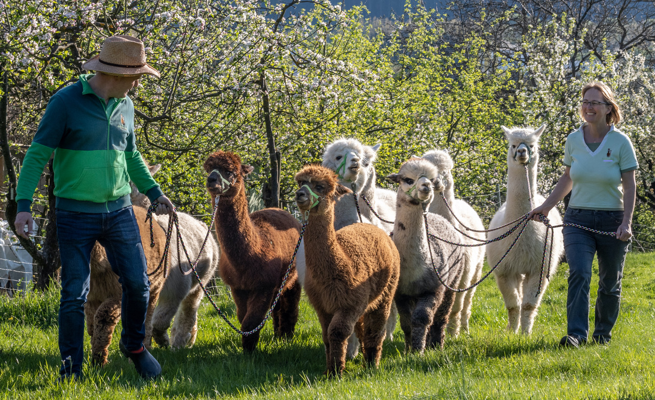Bewegung an der frischen Luft mit tierischer Begleitung! Nach einer Einführung in „Alpaka-Kunde“ starten wir unsere Wanderung, bei der wir direkt neben den großen Kulleraugen unseres Alpakas laufen (2 Personen führen ein Alpaka zusammen) und uns verlieben können. Fragen über die Tierart Alpaka werden gerne beantwortet. Anschließend ist der Hofladen geöffnet - falls Sie sich noch ein Andenken an Ihr Tier mitnehmen möchten. Diese Veranstaltung ist für Erwachsene und Kinder ab 6 Jahren (in Begleitung eines Erwachsenen) geeignet (bitte für Erwachsene und Kinder jeweils einen eigenen Platz buchen). Bitte mitbringen: feste Schuhe und wetterangepasste Kleidung.